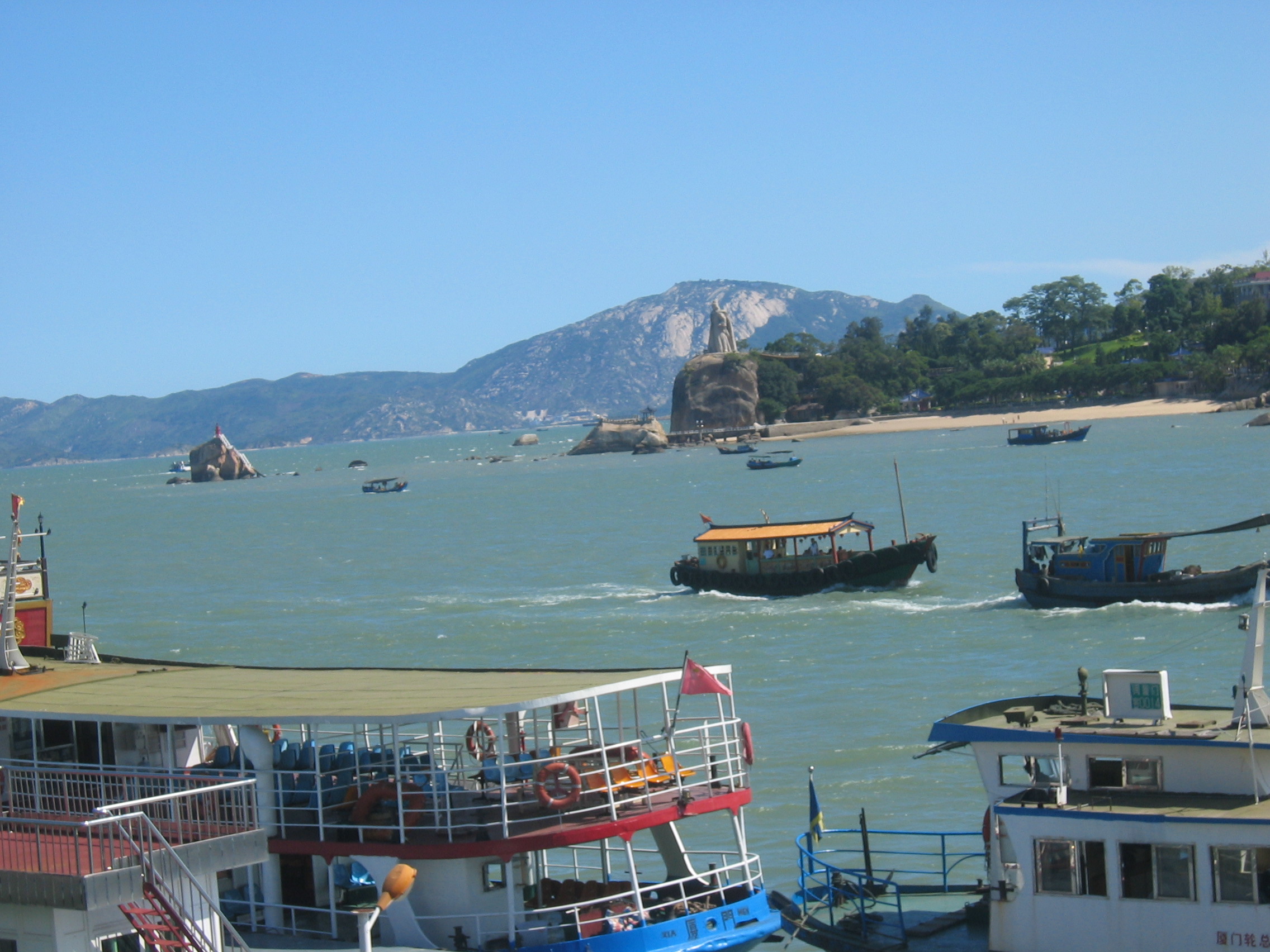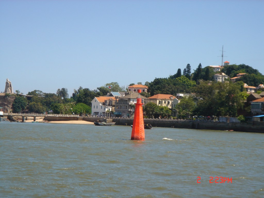 2004年七月的某一天,搭機到金門再轉「同安號」輪船到廈門的和平碼頭,回程則搭「馬可波羅號」快輪到金門再轉機回台灣,沿途的海天景致、悠閒的漁船、星羅棋布的島嶼,令人目不暇給,新鮮有趣。此時此刻,更因為特殊的時空背景,不免令人思緒起伏。倚著船舷,仰望著藍天,思索過去,白雲蒼狗,不勝唏噓呀!