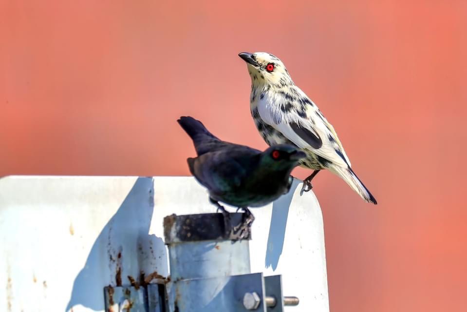 亜洲「輝椋鳥」,因基因突變而「白化」,能夠一見其真面目誠屬不易,又和「亞成鳥」及正常「輝椋鳥」同框,機率更是低,祝見到者2021開運!