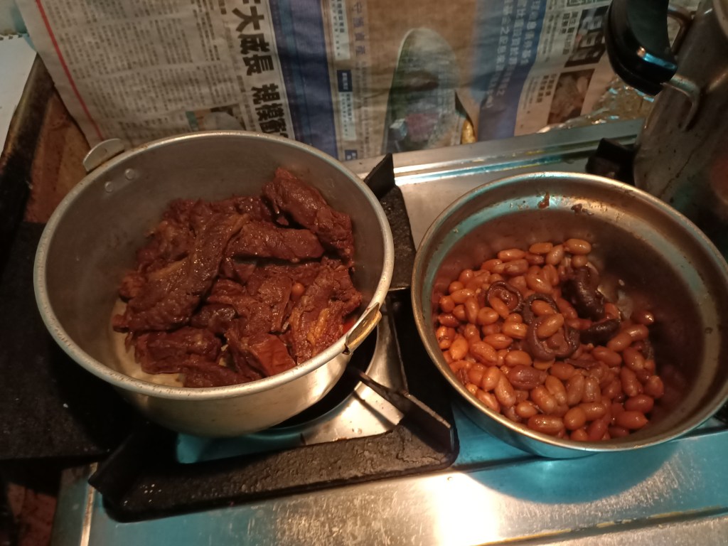 第三鍋處理並分鍋:牛腩,花生、香菇。