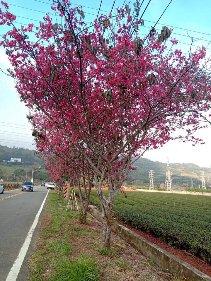 辛丑年大年初一下午,與內人一道開車走春,從田中老家出發,行經田中森林公園,往名間鄉方向一路爬坡,經赤水崎,左轉往139乙線道,此路是八卦山稜線,有許多台地,舉目皆是鳳梨園、茶園。不多久,立現眼前的是右邊路旁綿延幾公里,緋寒櫻、大島櫻(白)沿路開放,迎接春色,賞花人紛紛停車拍照留念,蔚為盛況。