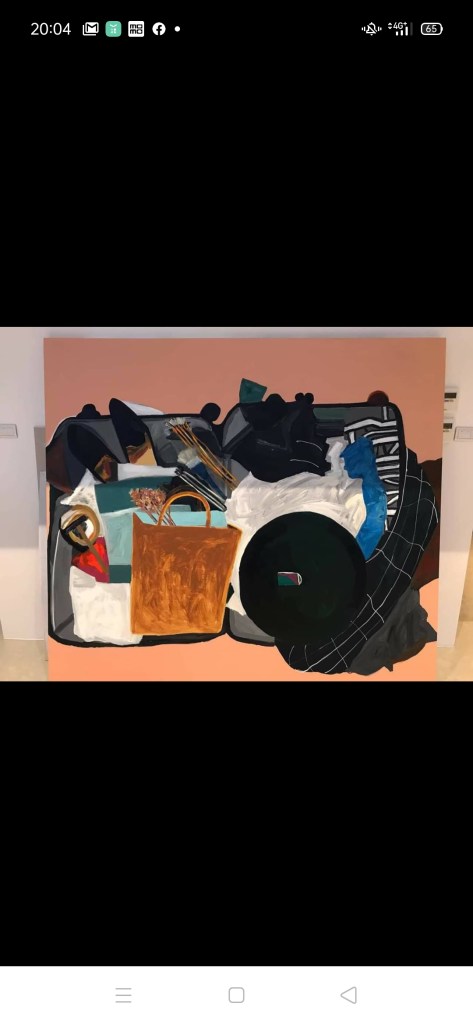 彥甫所畫的行李箱,其實可大可小,表面看起來是他畫畫的所要表達的內容概念,裡面藏了不少人際關係的私密,或許也是他內心所要表達的中心理念,甚至更到達他的人生價值觀,裡面所裝真的不外就是他走到現在的一生,所看重並想持續保留實體與非實體東西的總體現。