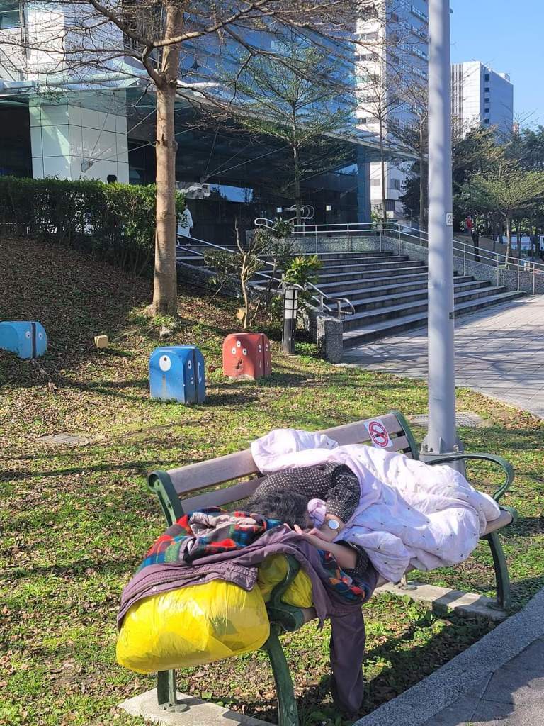 站前長條椅有一位五十來歲,看似街頭遊民的太太沉睡中。我沒驚擾她,在她的外套口袋塞了一張大鈔,這是我今天的零用錢,反正中午、晚上都有人請,我用不著。