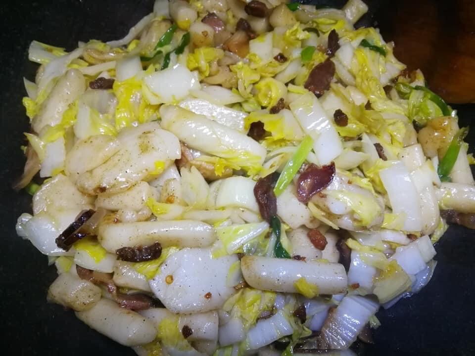 寧波年糕也能熱炒,一樣的程序做法,就只是少了湯汁,後來在臺南開過店,店裡主打熱炒寧波年糕,說是店,也就是租用眷村的老房子,只做外送服務,沒有請人,固定接上班族的單,而且要前一天預約收單,生意好到不行,不請人的原因是人力昂貴,這樣單打獨鬥了九個月,店才盤給別人做,原因只有一個,太累了!
