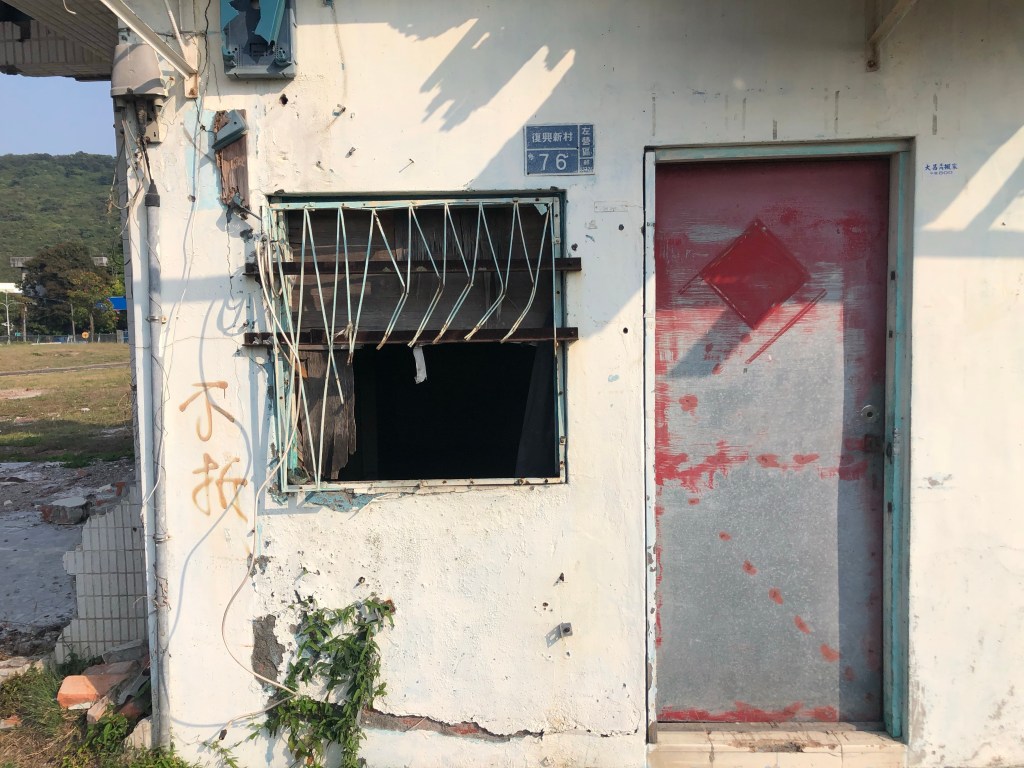 走回了夠深邃遙遠的記憶中,時間快速流逝,開始搬遷了,屋內的燈熄滅了,日以繼夜的昏暗,又重新經歷了一次,敞開的紅漆大門生鏽了,紅磚砌成的矮牆傾圮了,再次睜開眼睛,自己還是站在殘垣廢墟中,走出了鐵絲網,身後所有的熟悉,走回了記憶之中!