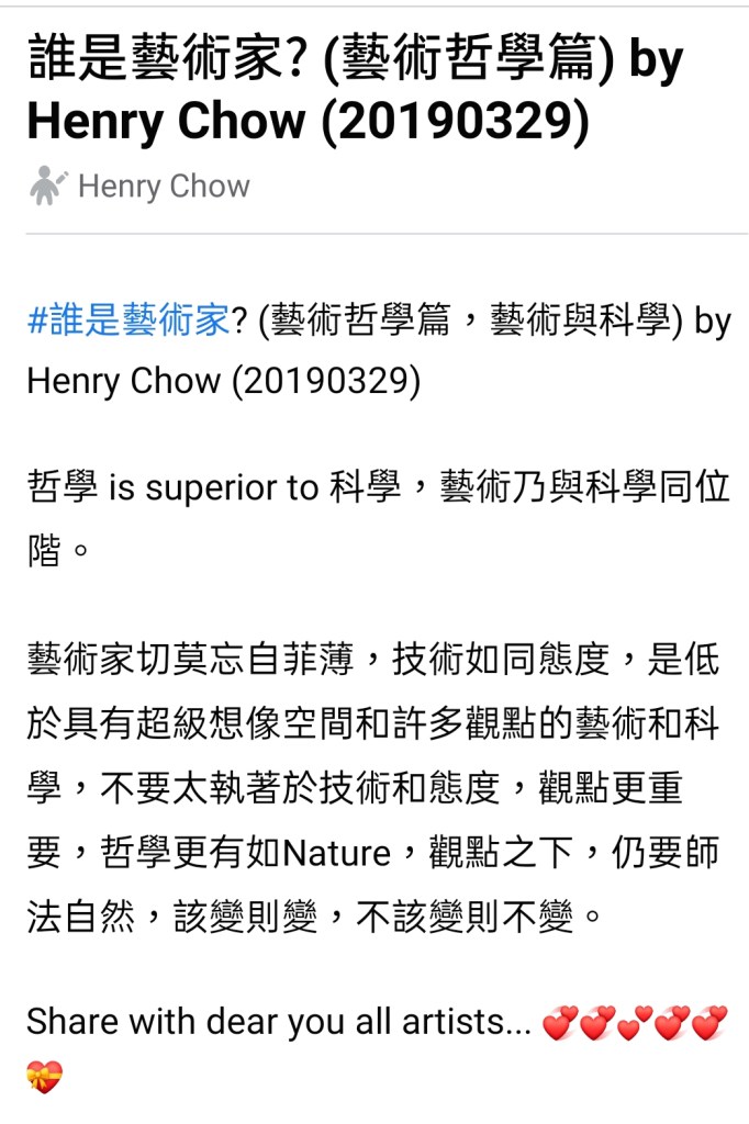 誰是藝術家? (藝術哲學篇,藝術與科學) by Henry Chow (20190329)