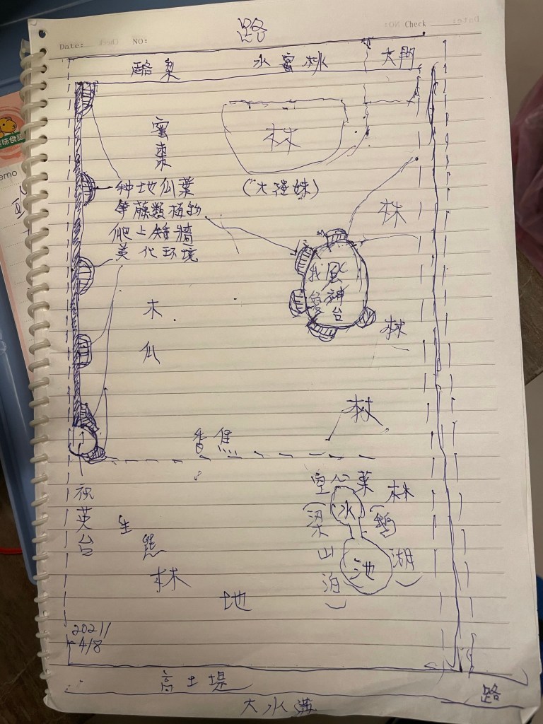 受農場客觀環境的影響,創設一道矮牆以便和鄰地作區隔,以及二高台(暫名「風神台」(陳熙焬建議改成「我愛台」)及「祝英台」。有一水池,或名為「梁山泊」或是「鵝湖」。哈哈。