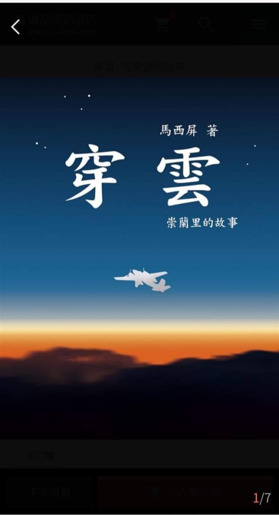 馬西屏於2日舉辦新書發表會,《穿雲 崇蘭里的故事》介紹書時表示,自己是以記錄空軍事蹟及眷屬故事的心情來寫的,包括親眼看見軍機從雙邊降落時因沒溝通好而導致雙雙撞擊墜毀的畫面、交戰中,軍機被300發子彈打穿卻成功迫降的故事,也描述家屬等待確認陣亡軍人身分的焦急。