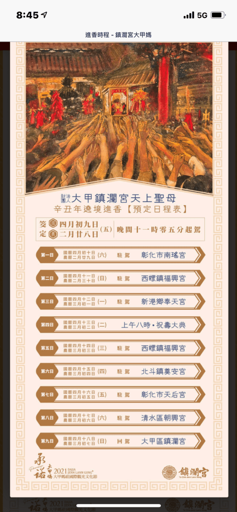 Day1 大甲鎮瀾宮-彰化南瑤宮(50公里)