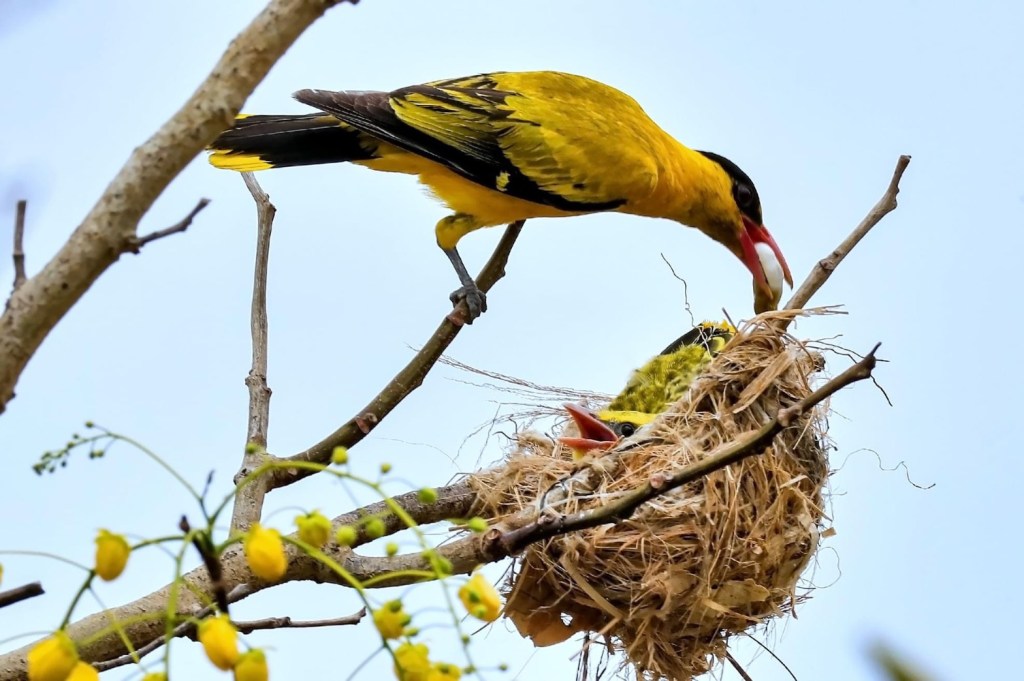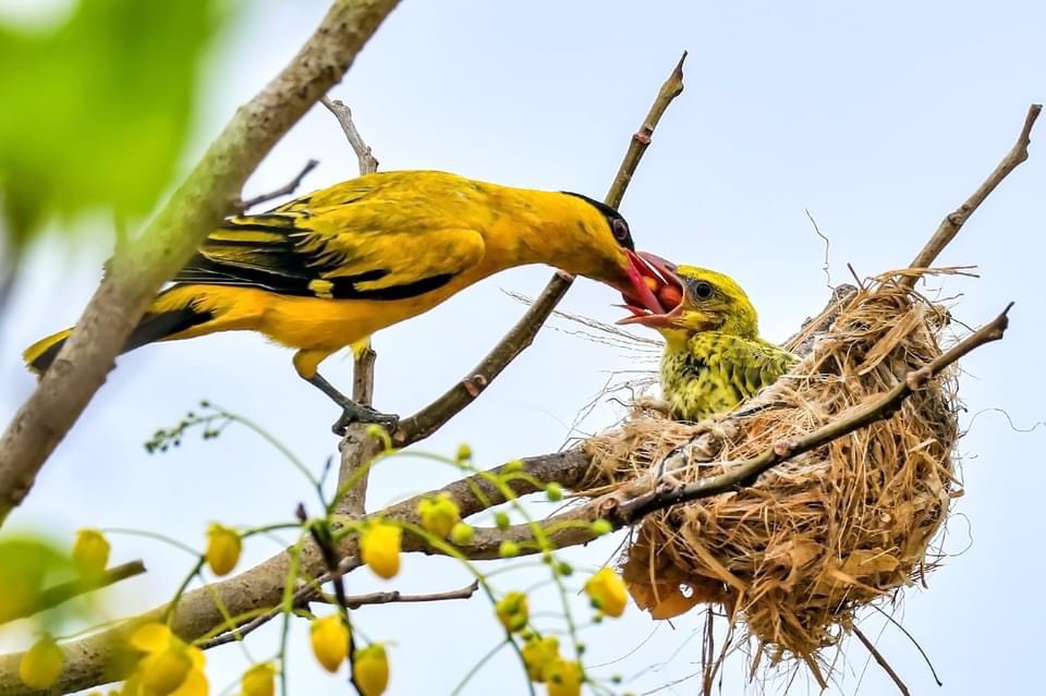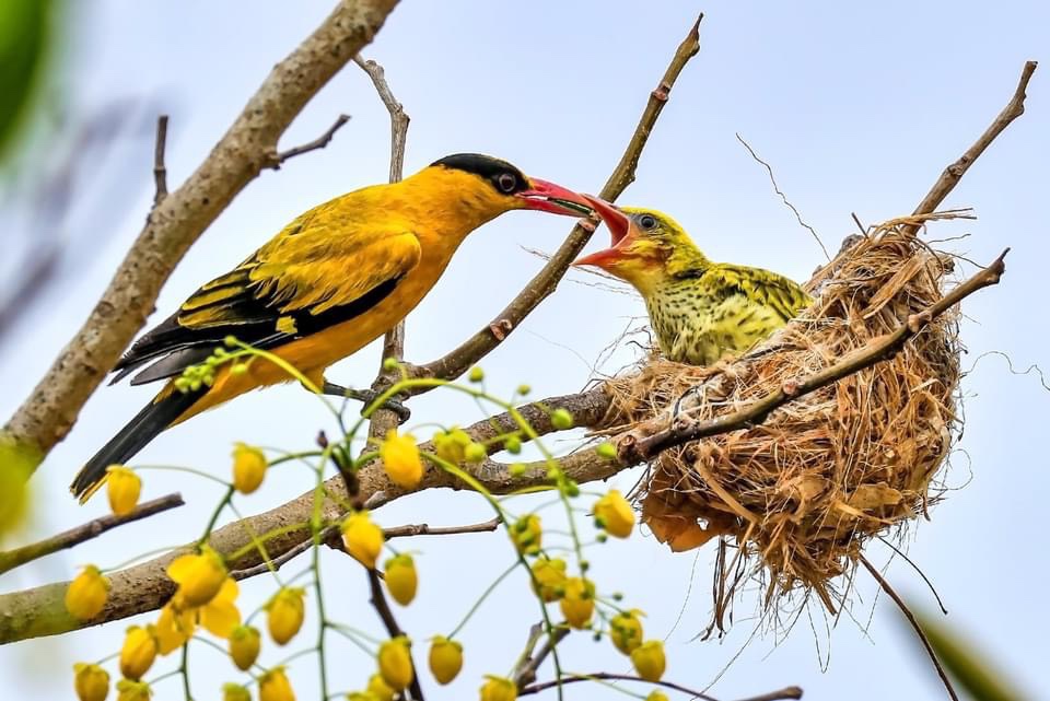 黃鸝媽媽真偉大,育鶵之後替寶寶淸理排泄物(便便)!