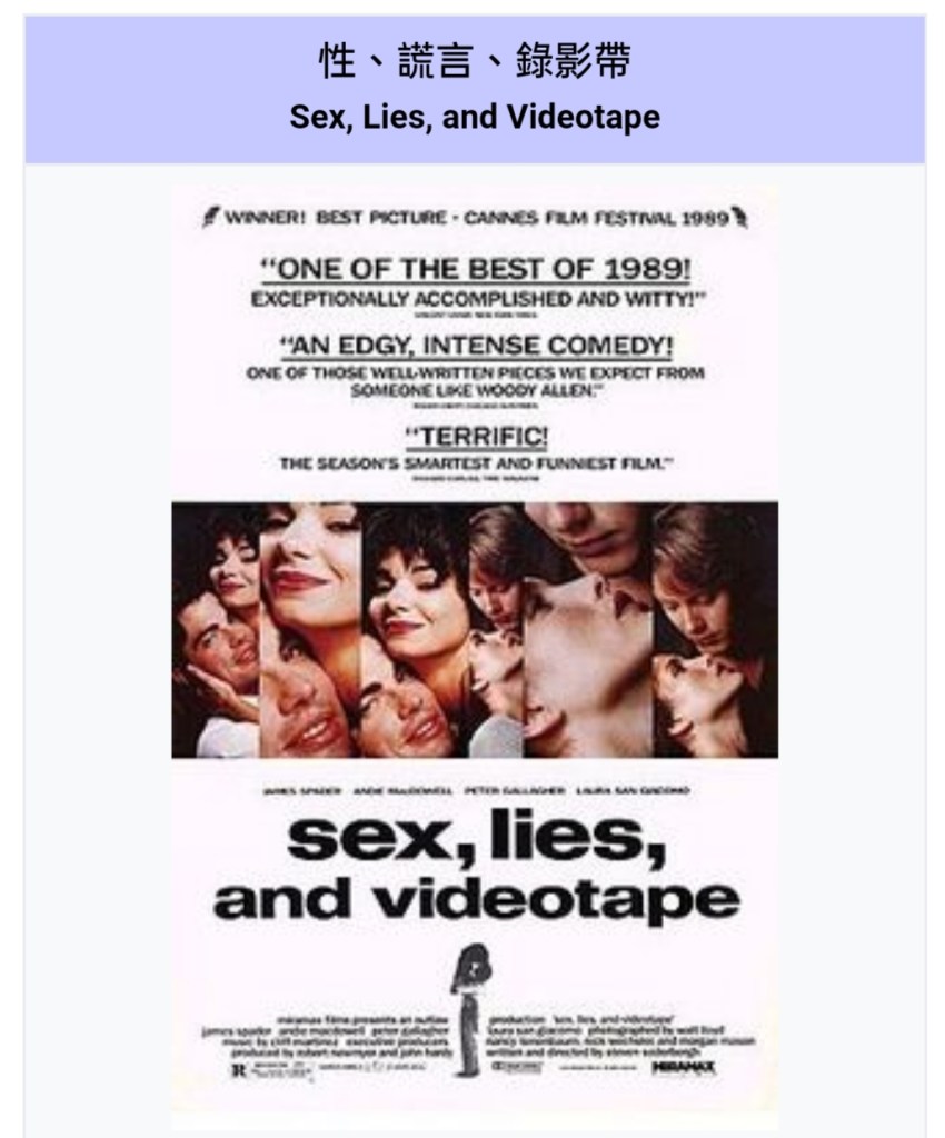 《性、謊言、錄影帶》(英語:Sex, Lies, and Videotape)是1989年的一部美國獨立電影,為史蒂芬·索德柏執導的首部劇情長片,劇情主要是一位男子拍攝許多女人談論她們性事的影片,並對一對婚姻岌岌可危的夫妻產生重大的影響。