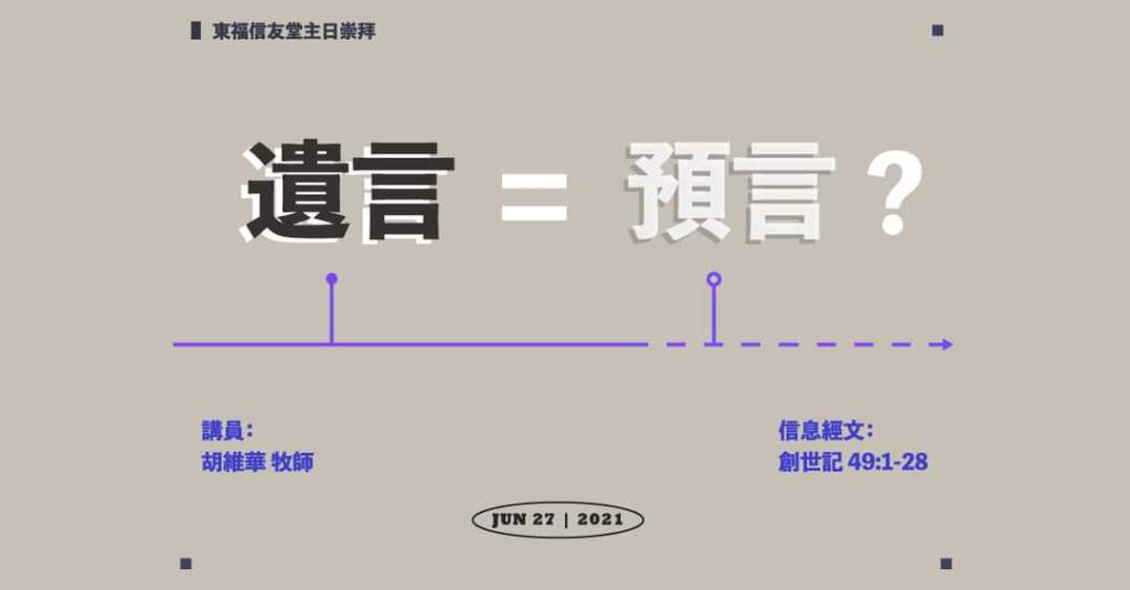胡維華牧師證道: 遺言=預言|東福信友堂主日崇拜(線上直播)