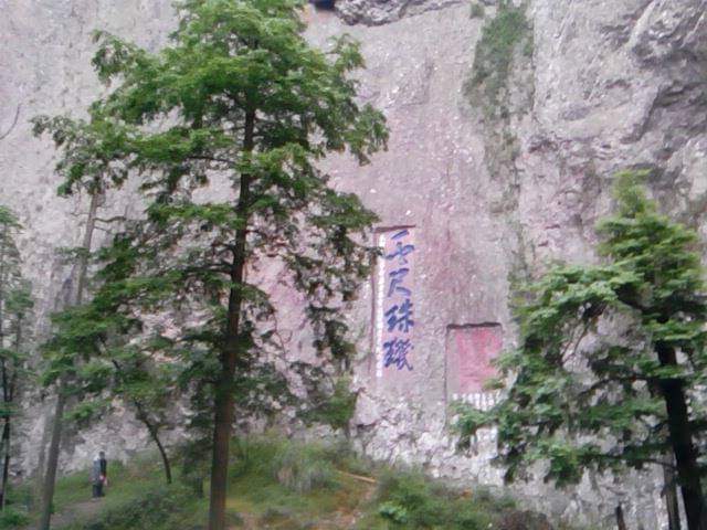 斷腸崖上面尚有小龍女跳崖時留給楊過用劍刻的字:「問世間,情是何物,直教生死相許。天南地北雙飛客,老翅幾回寒暑。歡樂趣,離別苦,就中更有癡兒女。君應有語,渺萬里層雲,千山暮雪,隻影為誰去。」