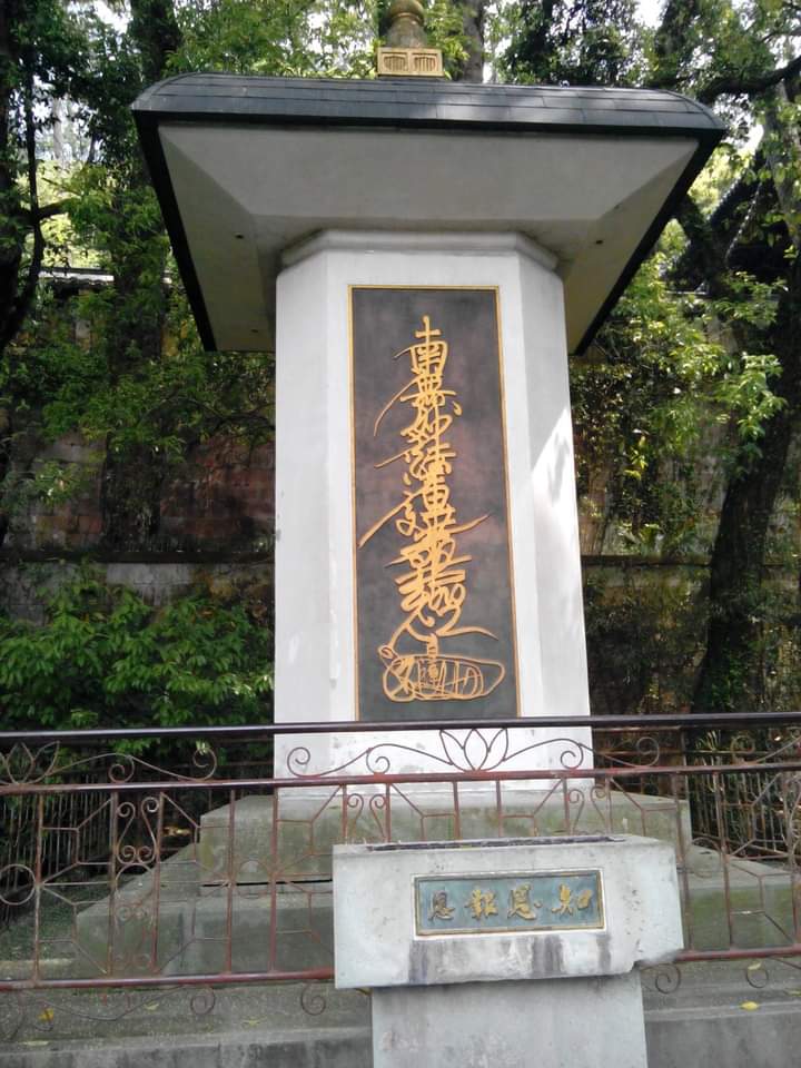 四月二十三日上午是移動時間,下午才有課程。所以浮生偷閒,來到著名的佛教天臺宗祖庭—-國清寺。入寺之前有一段路,沿路佛蹟處處,夾雜著山水勝景。首映眼簾的是聳天入雲,建於隋朝的隋塔,該塔六面九級,經千年滄桑依然屹立不搖。隋塔下處,則為紀念過去七佛而建的七座寶塔—-七佛塔,後面是一行禪師塔。