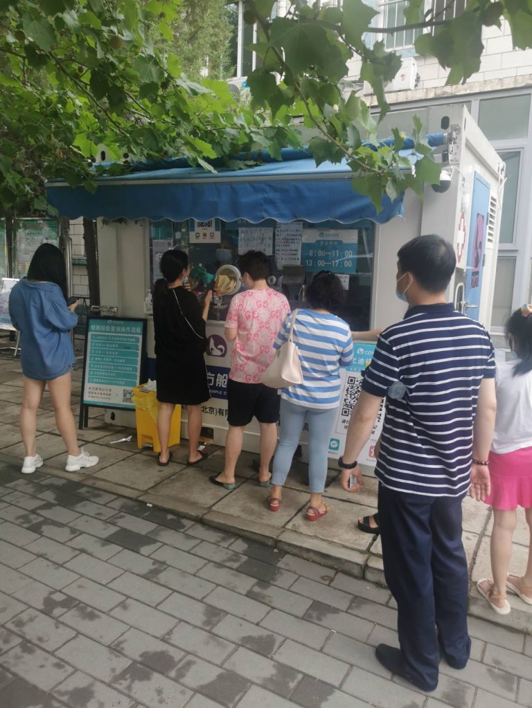 今天被双规 😄在规定时间到规定地点再再核酸检测。要排队。(在防疫旅馆是两位医疗人员到房门口做)。