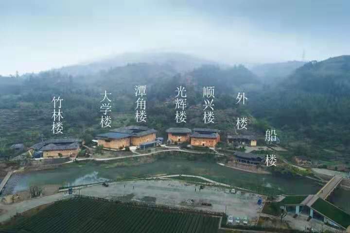 兩祠同奉開基祖奮公,同時在正月十三舉辦春祭大典,盛況空前。書山祠裔孫遍布福建漳州、廣東陽江及雷州半島、江西吉安、浙江瑞安、臺灣彰化等地。(右上邊臺灣書山祠,取材自網站;左邊大陸書山祠,右下邊是大陸書洋田中村的土樓群,現名田中賦土樓群,其中的潭角樓可能是我先祖曾經住過的四角型土樓)