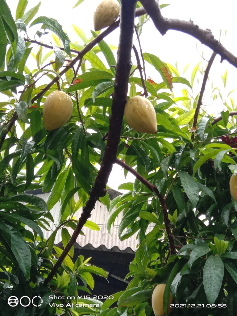 我鄉下老厝旁的一棵仙桃樹今年結果纍纍,既碩大又飽滿。冬至那天,摘了幾顆,連同湯圓一起,祭拜祖先。