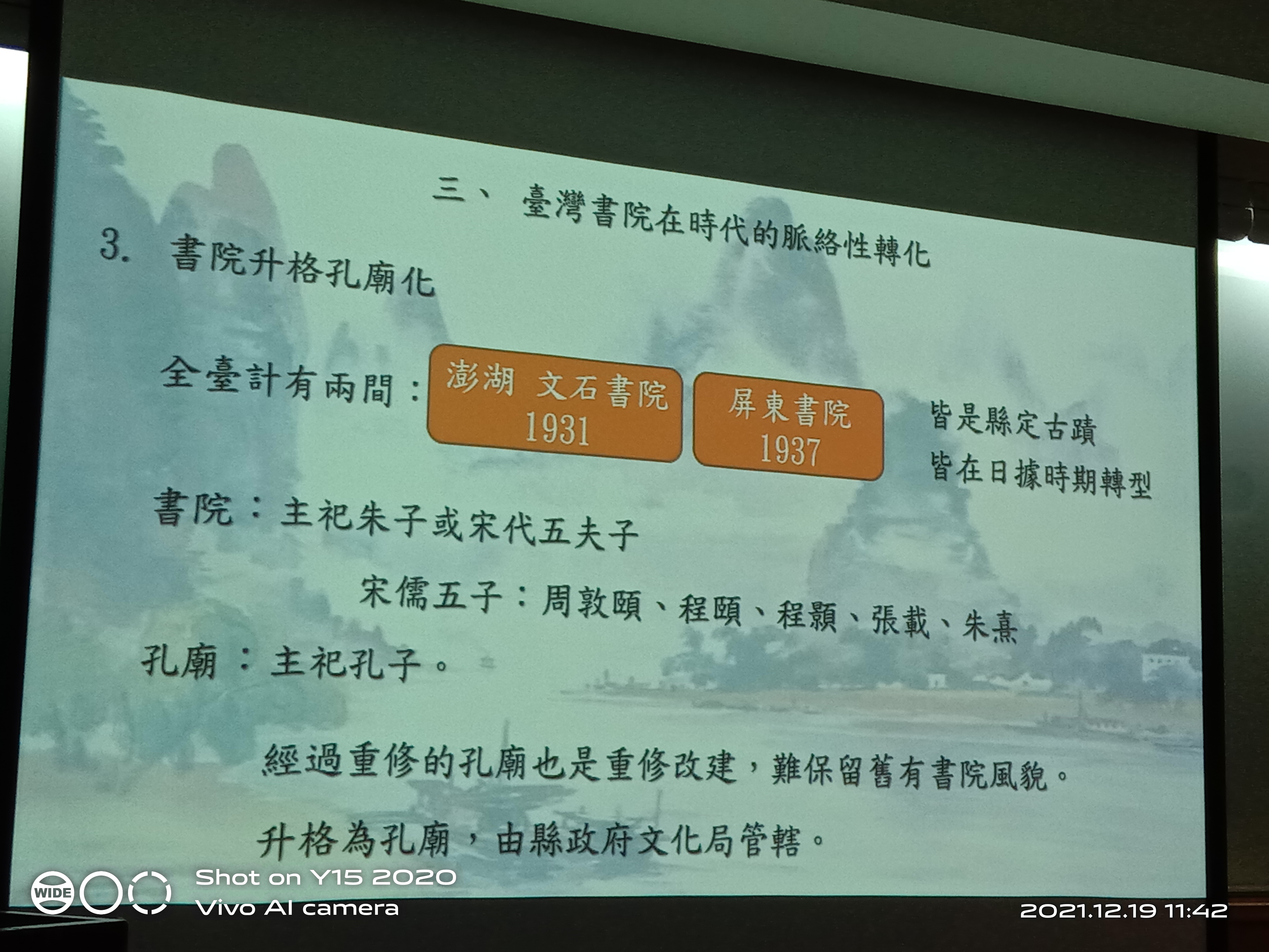 (三)書院升格孔廟化:有兩間書院,澎湖文石書院及屏東的屏東書院。