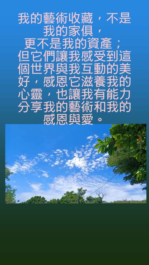 亨利:我的藝術收藏,不是我的家俱,更不是我的資產;但它們讓我感受到這個世界與我互動的美好,感恩它滋養我的心靈,也讓我有能力分享我的藝術和我的感恩與愛。