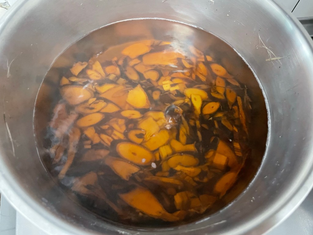 已經一小時,藥材的顏色出來了,氣味也飄出來了,但再2 小時會怎樣?水是否會乾光了?太多太少?