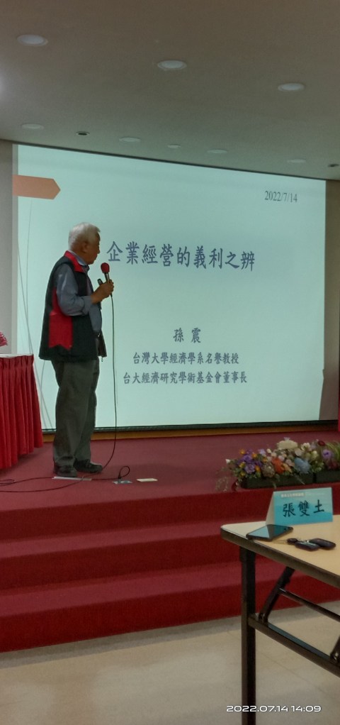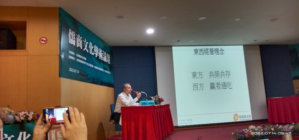 7月14日於台灣儒商文化協會所舉辦的儒商論壇上,聆聽施振榮董事長的「王道文化」,孫震校長的「義利之辨」,雖是老題目,但微言大義,發人深省,輒有新創思與啟迪。茲以七絕一詩,聊表受益與感悟。