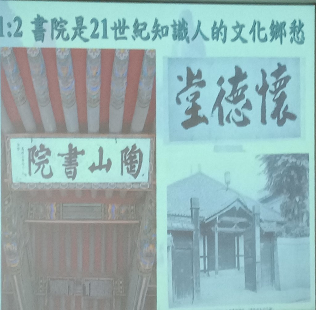 上午,聆聽師大教授張崑將老師的「台灣書院的現況調查」,他提到台灣書院演變成大傳統(純書院)與小傳統(寺廟化、觀光化)的兩種發展方向,而對小傳統發展表示憂慮,但也是必然的歷史發展。好在台灣民間的有識之士興起書院講學的復古與創新,重點在軟體建設,君子以朋友講習的麗澤精神,互相學習與分亨,而不在硬體的有形書院建設,他的卓見,有待觀察。呂榮海、黃俊傑、陳逢源等三位山長講談各自擔任山長的書院狀況、理念與實踐。