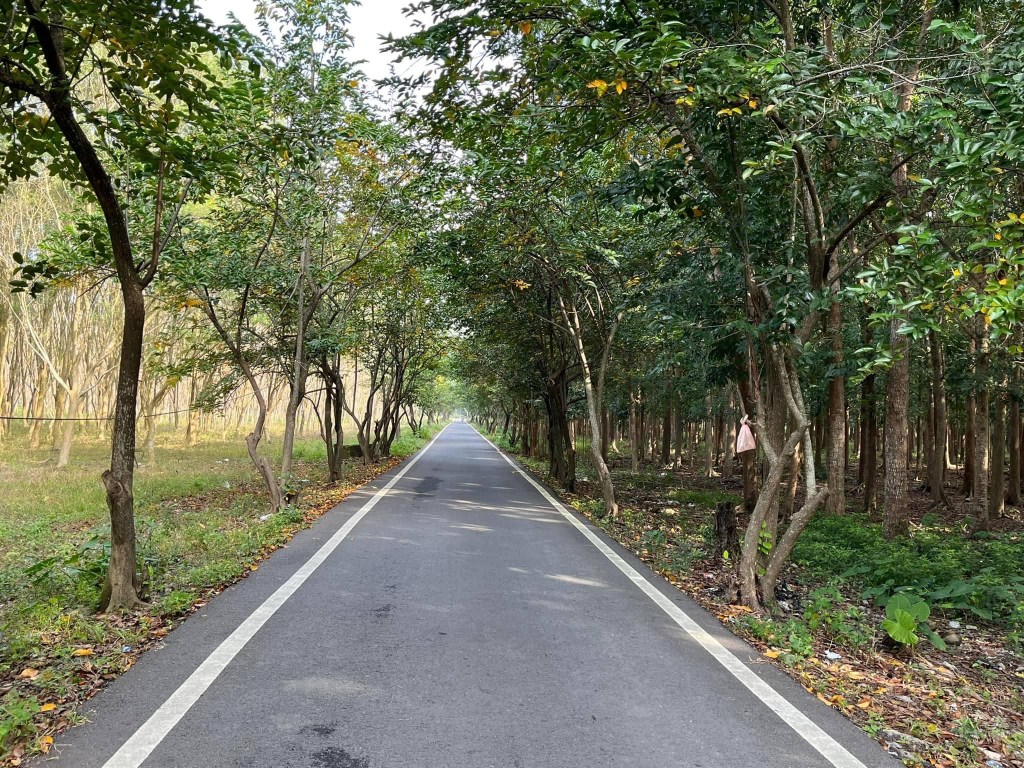 在兩旁整齊排列的桃花心木林中,有一長段約一米寬野草蔓生的小徑,在層疊堆積的落葉中,隱約看得到昔日早已因廢棄而荒蕪的運糖鐵道。在七〇年代以前,車台在裝滿採收的甘蔗後,即等待著小火車載往位於屏東的糖廠。火車行進的過程中,沿路都會有一群小孩追著火車跑,為的是拔下車台內的白甘蔗,帶回家充當水果及零食與家人共享。