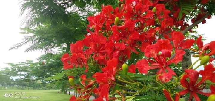 「未啦,日頭花仔爾爾 。」我聽著話尾,笑笑仔凊彩(tshìn-tshái,隨便,正字為請裁)共應答。無越頭,一直騎。
