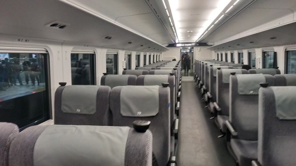 自強號的車廂乾淨雅緻,讓我頗有驚喜之感。這列車很有趣,雖名為自強號,過了花蓮幾乎是站站停靠,應該是方便返鄉或觀光客的需要,覺得十分貼心。座位下方有 USB 跟一般電源供手機充電,非常方便。