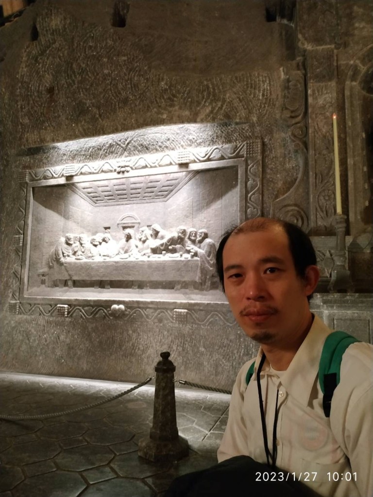 我們也參觀了克拉考夫的塩礦。小哥後面的是盐礦雕刻的達文西「最後晚餐」(下圖)
