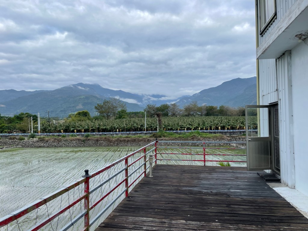 我向老闆要求介紹一家民宿,他介紹了同榮路這家,並騎車載我到民宿。隔日清晨驚喜民宿四周是農田及遠處環山,美極了,費用一天800 元,住一個月6000 元(心想很實惠,來常住算了,房間也大)。