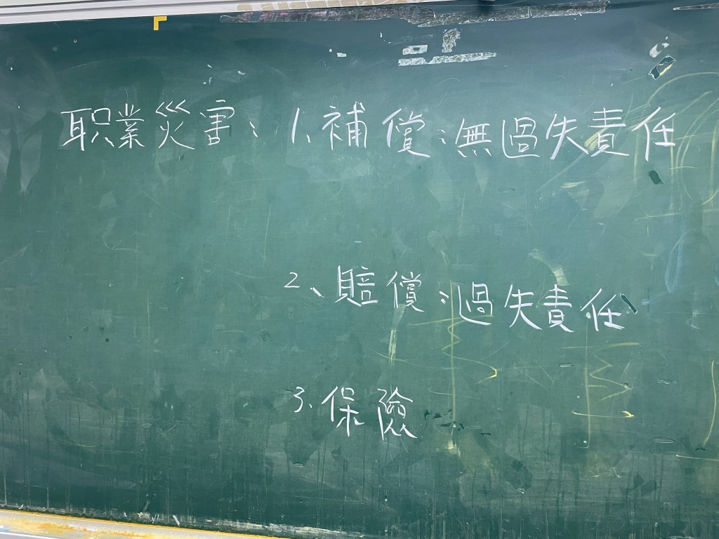 上周二(5/2)下午到開南大學講勞基法— —職業災害補償與賠償⋯⋯民國70 年我剛執業律師時就辦了碼頭工人作業死亡、員工吸入有機溶劑的賠償案件,均為客戶爭取到賠償,也深深覺得:工作賺錢、安全第一。當時一個不知天高地厚的小小律師敢代庶民控告當時軍方管理的碼頭,也未見軍方干涉司法,年輕的女法官黃熙嫣秉公判決庶民勝訴⋯⋯