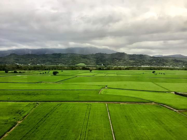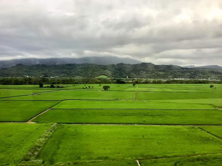 第二天中午搭乘環島火車前往花東遊覽,這裡是海天一色,山水相連的花東縱谷,火車悠閒地駛過景色旖旎的兩個山脈之間,鐵道兩旁出現的綺麗風光是一望無垠,平濤沃野的綠色阡陌稻田,呈現出寧靜悠閒的田園景致。