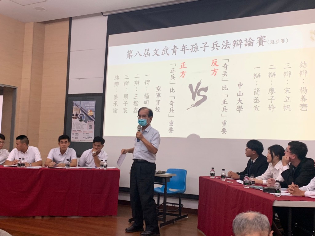 今年8月23日,在金門大學參加第八屆文武青年孫子兵法辯論友誼賽,並擔任冠亞軍總講評,這純粹是對《孫子兵法》兵法理論的探討。此次辯題是「正兵較重要,或奇兵較重要?」分別為正反各方的辯題。