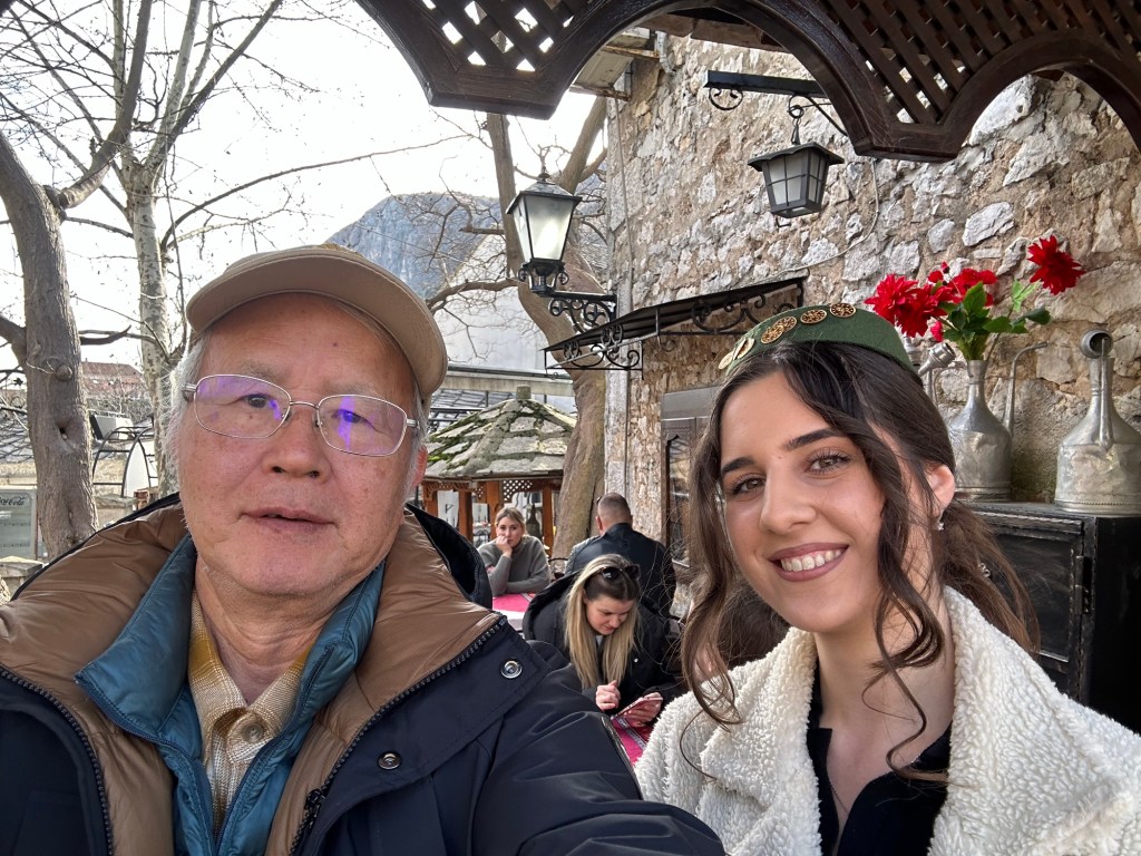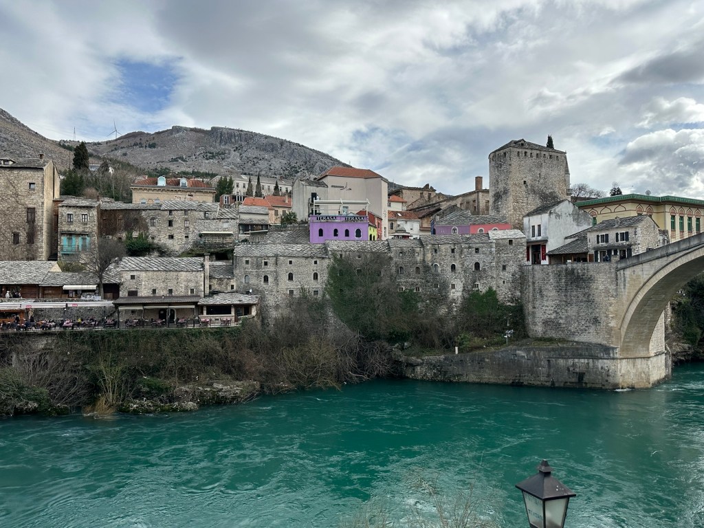 2 月13 日上午8:30 從 Salayevo 出發,先走一段高速公路,於近 Gradac 處已經無高速公路,改走一般公路,經Konjic ,公路旁邊有一條河、繼而水庫,水清藍美麗,沿著水庫向西北走至Jablanica 往西南而南一條十分碧藍的河流走,經過Potoci 再往前走30 分鐘,即大約於10:30 到達南方的Mastar (莫斯塔爾)。