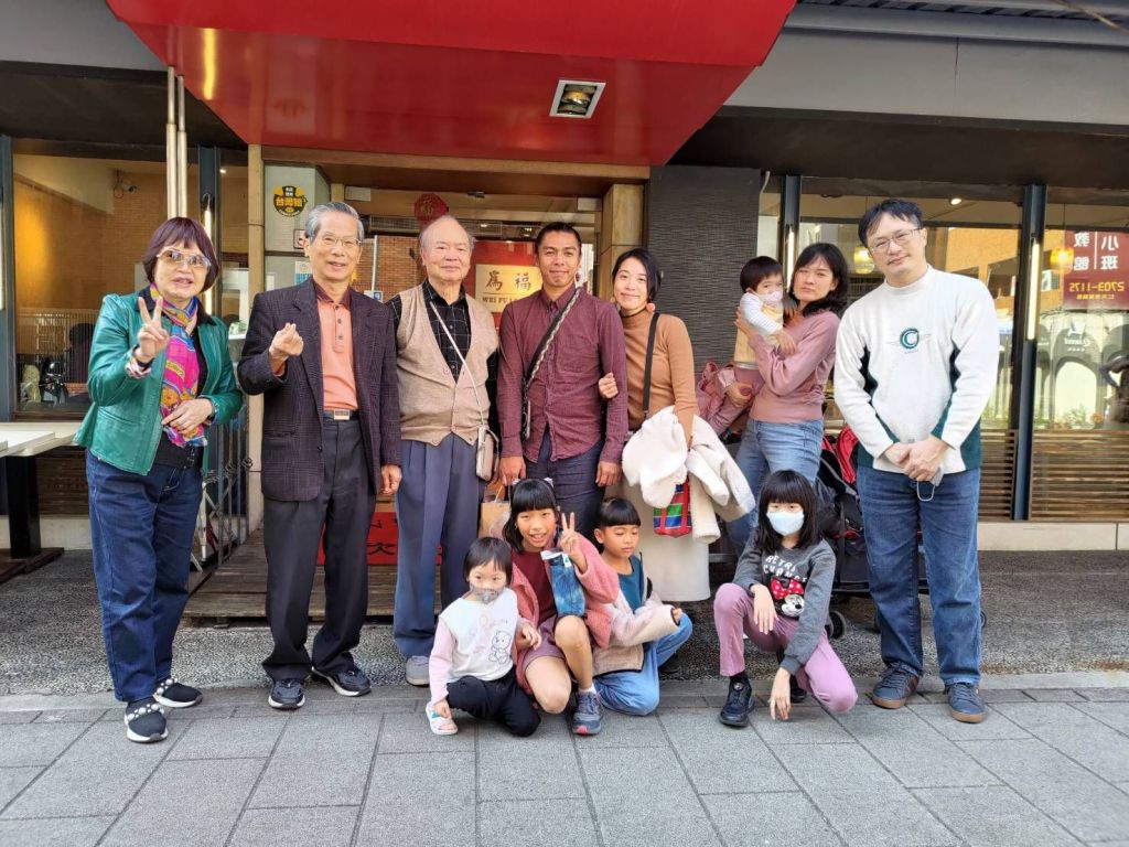 11日大年初二,早上搭捷運至公館站,由4號出口沿汀州路三段左轉思源街,前往〔河濱公園〕踏青賞花,如照片6。中午在汀州路三段〔濃氣屋〕日式拉麵公館店,吃豚骨拉麵、咖哩湯汁配飯、喝果汁飲料。12日大年初三晚上,內人掌廚作幾道料理,宴請自日本東京回台的內兄,在文昌街家中與兒子、媳婦、孫子、孫女全家人一起聚會餐敘。13日大年初四迎財神,中午在信義路四段199巷〔為福樓〕聚餐,如照片7。餐後至附近舅舅家玩〔戳戳樂〕遊戲,接著到三角公園散步,然後回文昌街家中給幾位孫子、孫女拿蠟筆、在白畫布上玩畫畫。同日下午張俊宏表兄來電約我於14日上午10:00在台大法學院舊院區會面敘舊。並與在草屯老家的大哥手機聯繫有關張錫寶女兒張瑞英、張瑞馨事宜。當天也有打電話給住在新店的堂兄洪俊雄,聊起小時後住在北投崁仔腳祖厝〔荔園〕的往事。中午則就近在杭州南路一段Komeda’s Coffee店吃簡餐,如照片8。