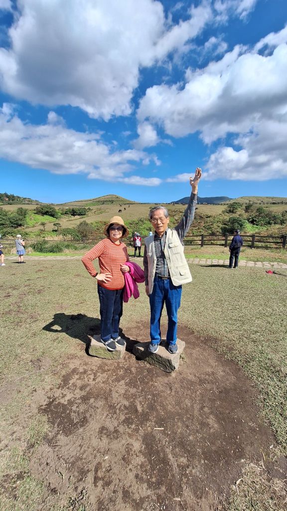 2月1日早上搭捷運淡水線至劍潭,轉搭小15公車到冷水坑服務站,與小女兒、小女婿會合,再從冷水坑沿山坡小路健走到擎天崗,沿途拍了幾張照片,如照片1。中午開車到內湖瑞光路〔永寶餐廳〕午餐。餐後再開車上陽明山山仔后,下午住進陽明山〔美國渡假村〕(American Village)(台北市凱旋路61巷2弄2號)草坪派對家。傍晚在房間後面的球場打籃球、羽毛球。小朋友則在草坪上玩溜滑梯、盪鞦韆。在獨棟房屋內餐廳自行準備料理,享用自助式晚餐。次日晨起,也是在餐廳吃自助式早餐。餐後在屋子前面拍合照留念,如照片2,然後至櫃台Check out 。接著開車上陽明山〔小油坑〕看火山噴氣孔、崩塌地形、及硫磺結晶。中午至竹仔湖〔黑木屋〕餐廳午餐。下午散策陽明山〔花卉試驗中心〕,拍照如照片3。