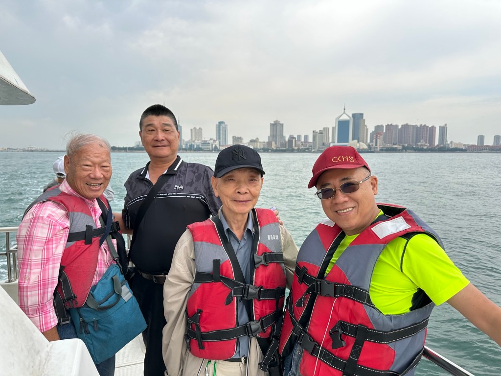 此次,也是由擔任導遊的宗親呂忠義承辧,並擔任導遊。首先,他替大家安排了搭快船觀賞美麗的青島港海灣,從海中回頭看青島港灣市區的高樓大廈,頗為壯觀美麗,這和我以前雖曾數次來過青島是從陸上看海灣,是完全不同的,感覺挺不錯的,可以加分。
