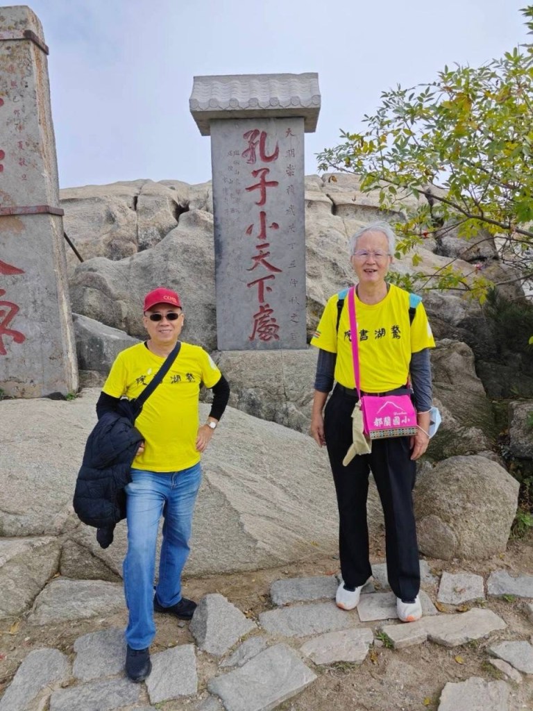 在泰山大家開開心心的,先乘坐纜車登上泰山「中天門」下纜車,然後步行、一層一層漸登南天門及峯頂,我很敬佩81歲的呂長吉宗長、80歲的呂修身宗長,也一步一腳印的登上泰山頂,我希望我到這個年紀時,我還能再來。這次,我應是第3次登泰山了。大家開心的在泰山照了很多相片。