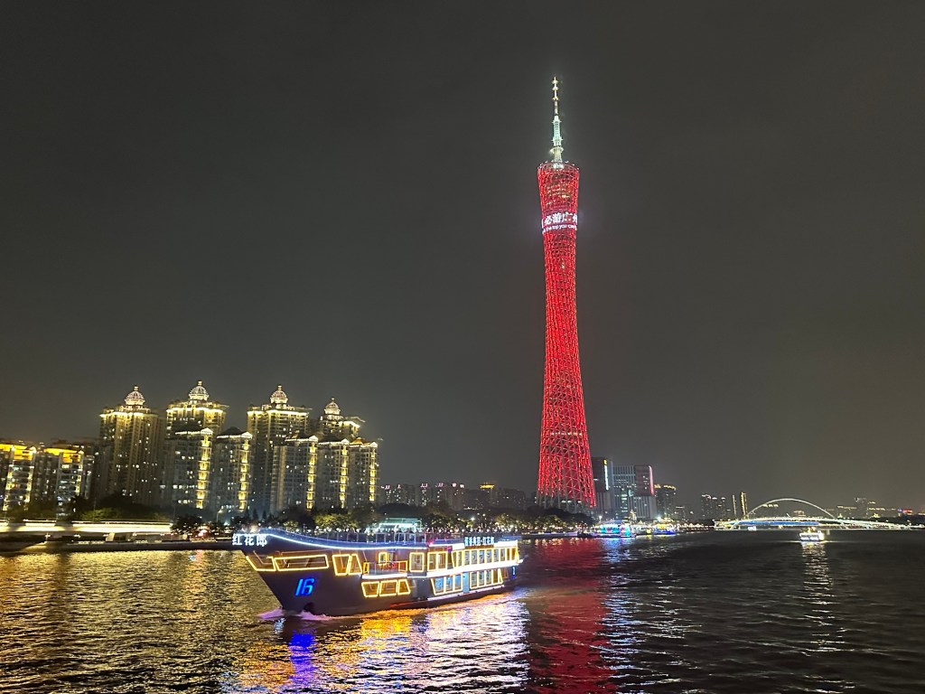 昨天晚上去參加珠江夜遊,訂的是19:45 分的船,三樓每位188 元,最頂級的。夜景、廣州塔、多座大橋橫跨珠江,一重重燈光夜色,高潮迭起⋯⋯感覺相當不錯。為廣州按「讚」!