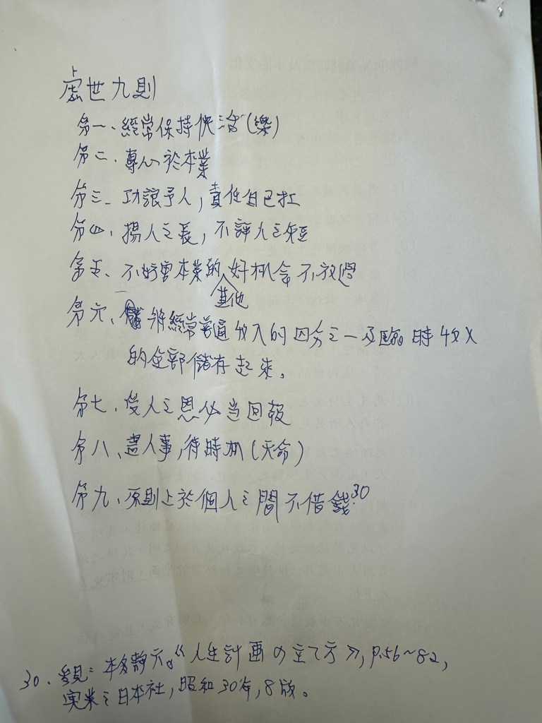 近日稍閱讀、翻譯幾段本多靜六教授(1868-1952)的日文書「人生計畫 之方」,他是那年代的「山林家」,善於投資山林、山地、鉄道及其他股票,每月存薪水的四分之一作投資(見其「處世九則」之六)、「經常保持快活(樂)」(處世九則之一),久之竟成為當時日本最富有的教授之一。書中𠕇一節「人生如登山」,和程兆熊教授喜登山產生「立體𠵍思」批判平面文化很像。