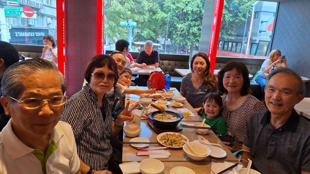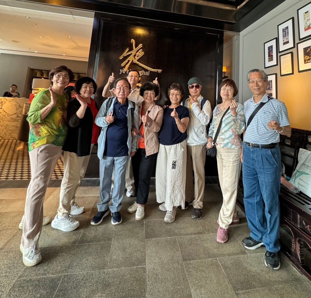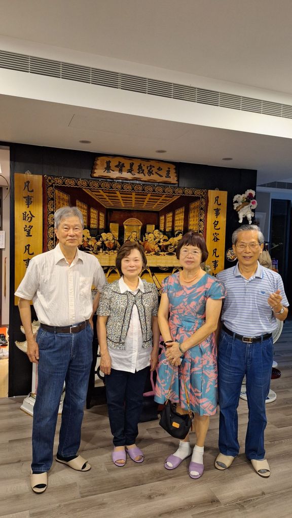 17日上午與自美國加州舊金山回來台北的侄兒一家人,相約在捷運信義安和站會合,搭捷運文湖線至木柵動物園遊覽園區,如照片4。中午在園區內吃自備的飯糰簡餐,下午再搭捷運回家休息。晚上與以前南投高中同事陳惠南老師賢伉儷久別重逢,他自民國64年放棄教職,赴日本鹿兒島醫科大學進修,畢業後在日本鹿兒島市執業腸胃科主治醫師。離別迄今將近50年再度重逢,人生機緣真是奇妙。他是我的草屯同鄉、也是台中一中學長,又是台灣師範大學學長,他唸數學系,我唸化學系,高我兩屆。巧合的是,其夫人與吳玉露還是中興大學中文系同班同學。我們相約在士林夜市邊的〔圓山ㄧ號院〕8樓其表弟家宅聚會餐敘如照片5,餐後我們再到1樓的Lobby 喝茶敘敘舊,久別重逢,相談甚歡。19日中午在通化街〔小南門點心世界〕午餐聚會,如照片6。並預約機場接送專車於下午15:30來信義路四段信義安和站接客區,載侄子Tim一家人至桃園中正機場,內人與其妹妹隨車至機場送行。