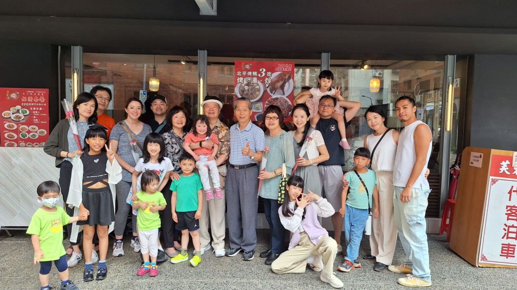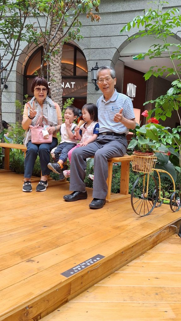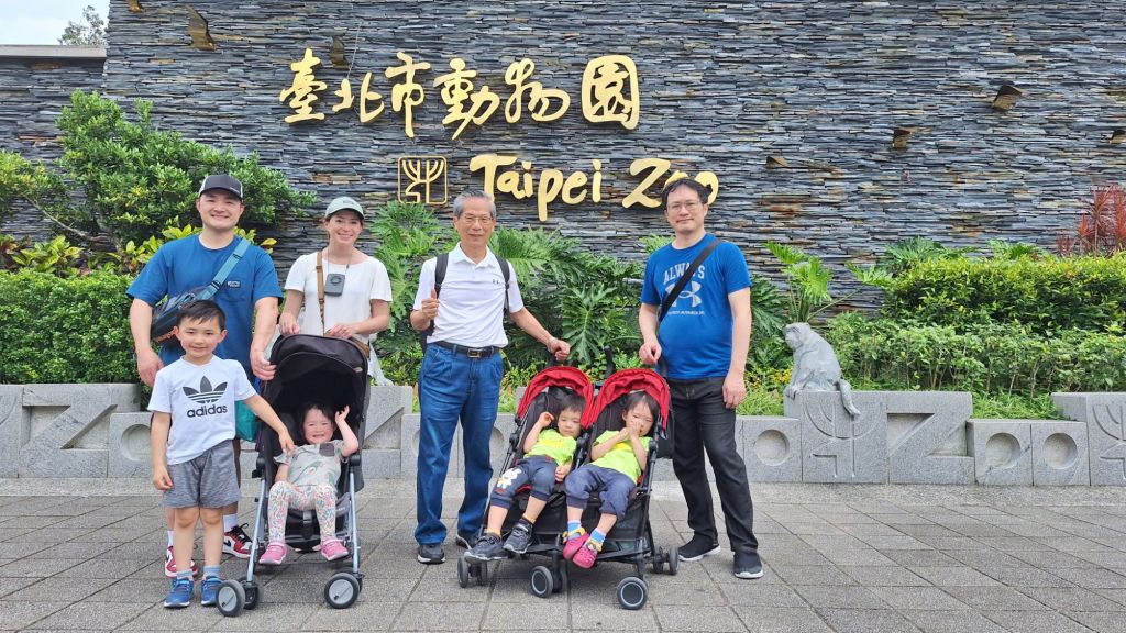 照片9:2024年5月30日爺爺與雙胞胎孫子、孫女合照於安和路巷口。