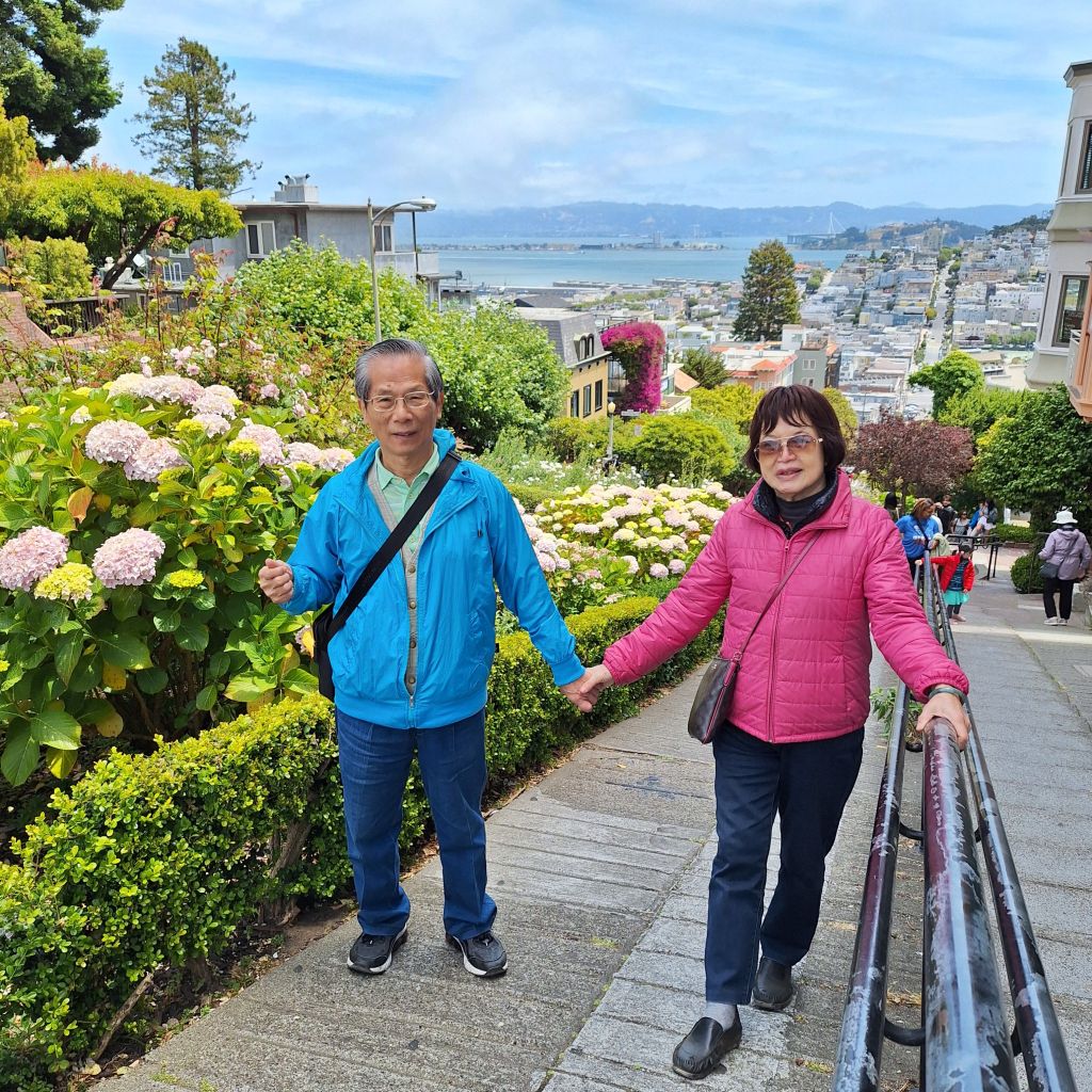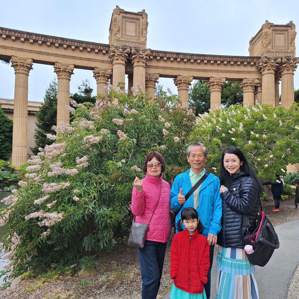 甲辰年6月18日早上6:30搭機場接送計程車,前往桃園機場第二航廈長榮班機櫃台辦理登機手續,於機場貴賓室享用早餐。飛機原訂於10:15起飛,結果延至11:00起飛。經過換日線於美國時間6月18日早上7:00安抵舊金山機場,內妹Yolanda開車前來接機,然後前往姪女Judy家住宿休憩。19日是美國的國定假日(America’s Second Independence Day)。與內妹的兒子Timothy一家,女兒Bernice一家,開兩部車前往舊金山灣區旅遊:金門公園(Golden Gate Park)、藝術宮(Palace of Fine Arts)如照片1,金門大橋(Golden Gate Bridge),並到大橋下的Beach散步,如照片2。然後開車到舊金山市7區的倫巴第街(Lombard Street)浪漫花園拍照,如照片3。接著散策漁人碼頭(Fisherman’s Wharf ),39號碼頭(Pier 39)以及舊金山市中心Downtown等景點。