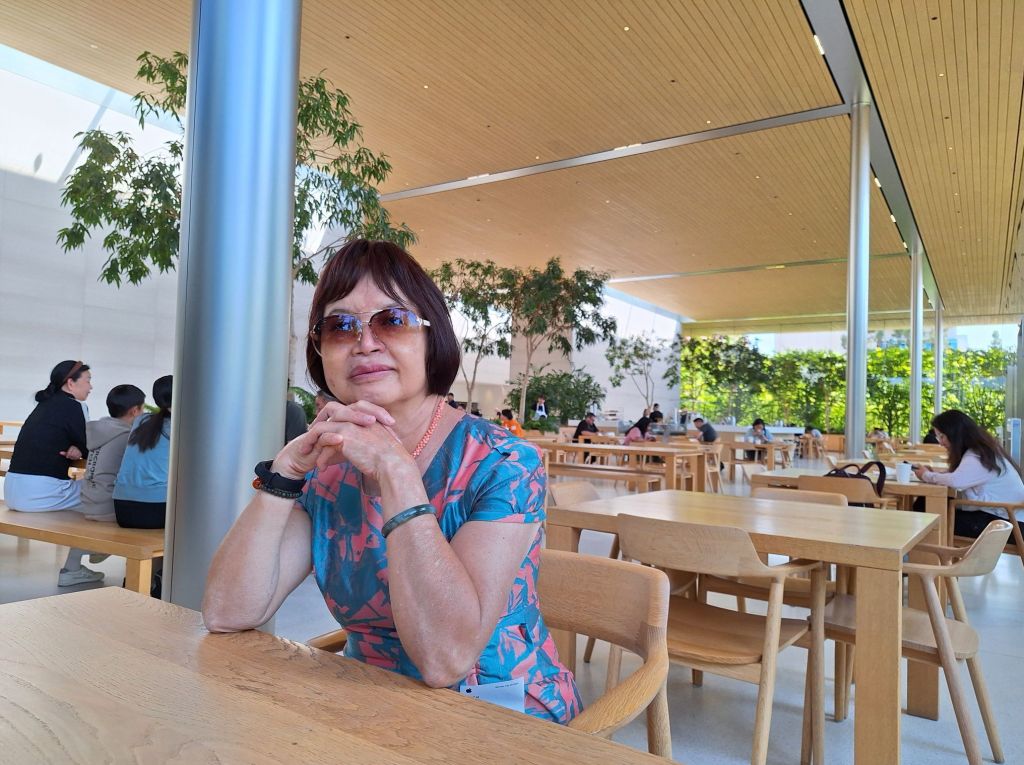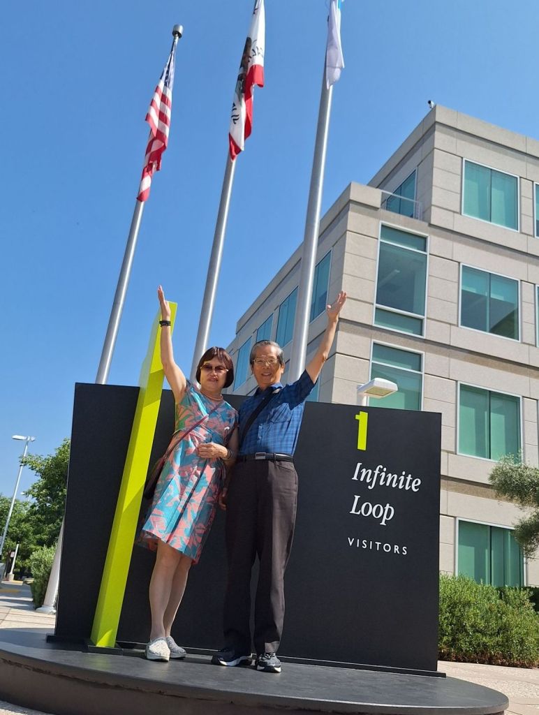 我們行程預定在姪女住處停留三天,7月30日再搭長榮航空班機返回台灣。姪女的先生Fred見面時自我介紹,得知其在聖荷西(San Jose)蘋果公司總部園區(Apple Park)上班,內人隨即想起她的學生Mike Lee也在同一蘋果公司上班。Mike 是美國密西根州立大學機械工程博士,與我們是草屯同鄉,是內人在草屯國小任教時的音樂班學生。在美國蘋果公司總部上班,歴時已逾33年。因此機緣巧合,隨即以line視訊通話方式,聯繫上學生。他說適巧原訂7月29日要出差赴印度洽公,因故臨時取消。當天剛好有空招待我們,遂偕同其妻特地開車前來接我們,至加州矽谷聖荷西的蘋果公司總部,参觀名聞遐邇的美國蘋果公司總部園區(Apple Park)。
