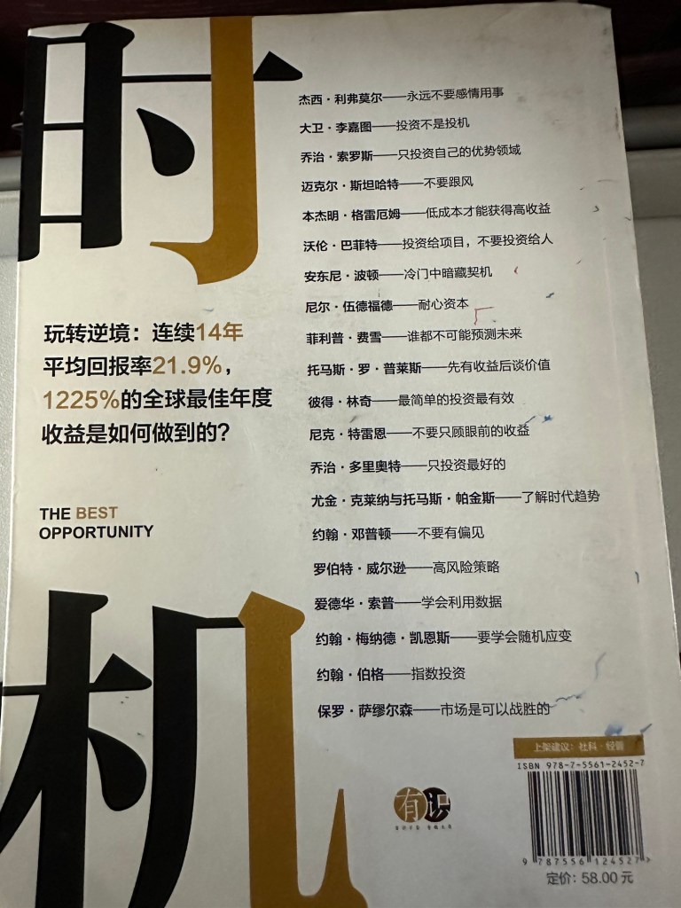近日閱讀英國Matthew Partridge著The Best Opportunity一書,由莫浩翻譯成中文,書名「時機」(湖南人出版社,2020),札記若干要點: