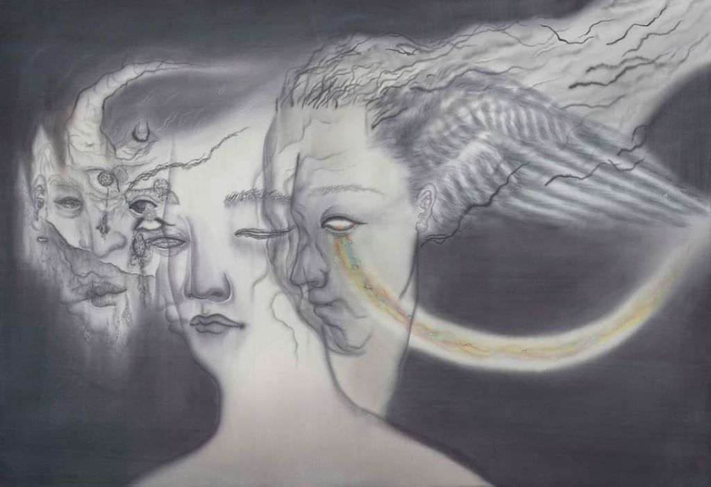 劉信義作品:善惡的淚水|水墨絹本設色|134x193cm |2020