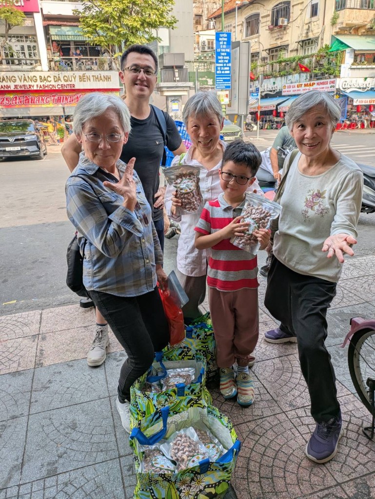 看完沉重的戰爭博物館,吃個午餐,就來到本次最重要的行程:當地市場採購腰果。科普了一下,台灣入境的限制是一人6公斤,我們有6人,最後一共只買了16公斤而已,因為把店家的貨掃光了!(這16公斤都不是我要買的,合先敘明) 物價有在上漲,今年腰果一公斤24萬VND (312 TWD)。一年半前好像是20萬。