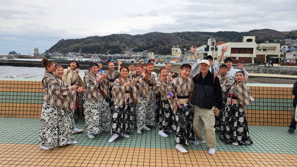 3/15日上午從伊東溫泉會館(KS. House) 步行10 分鐘到伊東海邊公園,碰到「伊東絆之祭」典,欣賞了10 組舞蹈表演,我們雖不懂「絆之祭」,但也開心,運氣好,碰見了當地的大活動。第一支舞曲竟是「素蘭」,很熟悉的聲音。