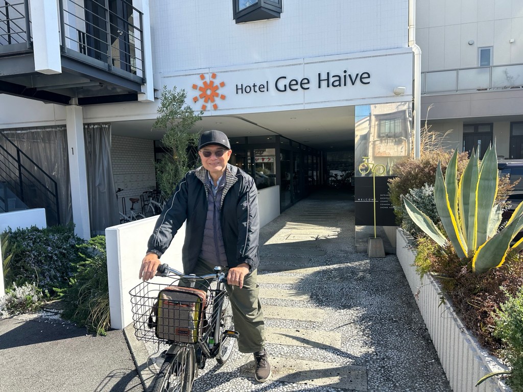 在三島住在Gee Haive ,在火車站南囗右稍前方,走路到車站約10 分鐘。這是一家非常實的飯店,有衛生間,每層15間客房共用3 間公共浴室,我租稍大,2200NT ,邱董選小的,1200 NT ,價格包括早餐、免費的4 種葡萄酒、果汁,免費提供腳踏車,還有圖書,很划算。鄭重推薦。