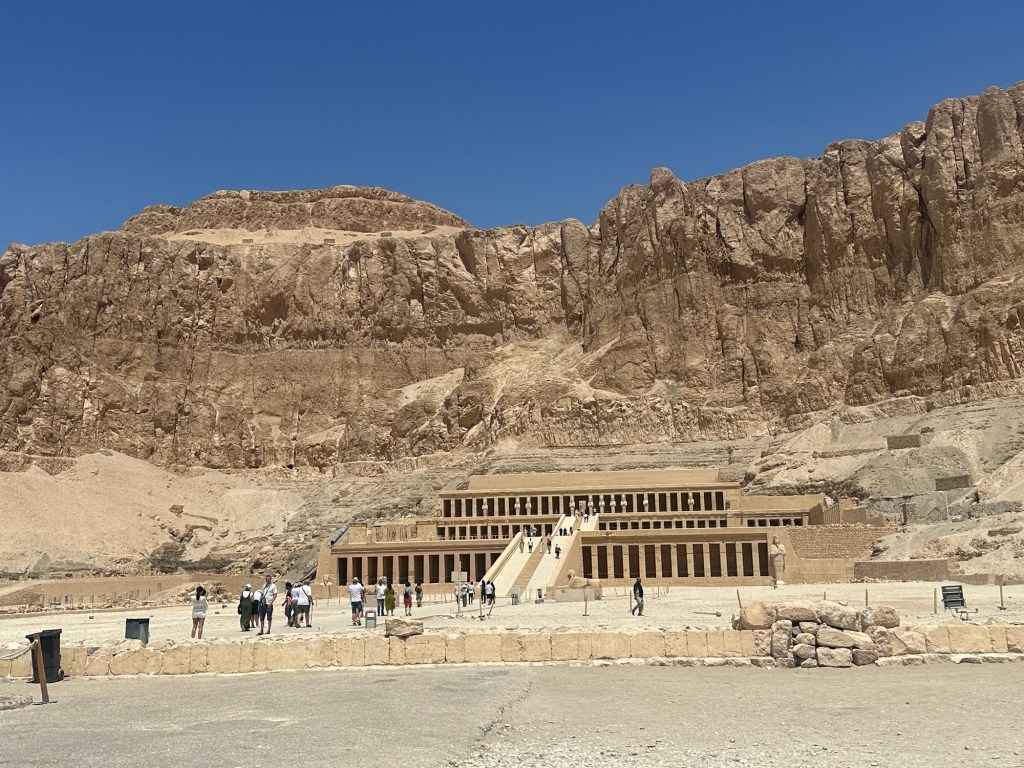 接著,也是在附近參觀了「哈齊普蘇特女王神殿」,由她和她的父親圖特摩斯一世興建,具有不可一世的氣勢。時近中午時分,周邊沒有一棵樹,寸草不生,完全是沙石地。